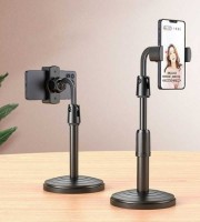 Phone bracket 360 degrees rotating,270 degrees forwards-backwords turning, Rotating locking tightly, height extends freely. Firm base, stable on table. Suitable for video chat, broadcast live, stage, watch video etc.. Smartphone Microphone Retractable Stand L7 for Live Streaming or Vlogs. Lightweight and compact size. Easy to carry and install. Round base, stable design. Steel Tube and plastic base, durable and easy to use. Specifications: Material: Steel + Plastic. Base Diameter: 11.5cm. Height: 22 to 30 cm, Adjustable. Applicable for: Conference rooms, schools, stage, shooting field, online singing, live streaming.